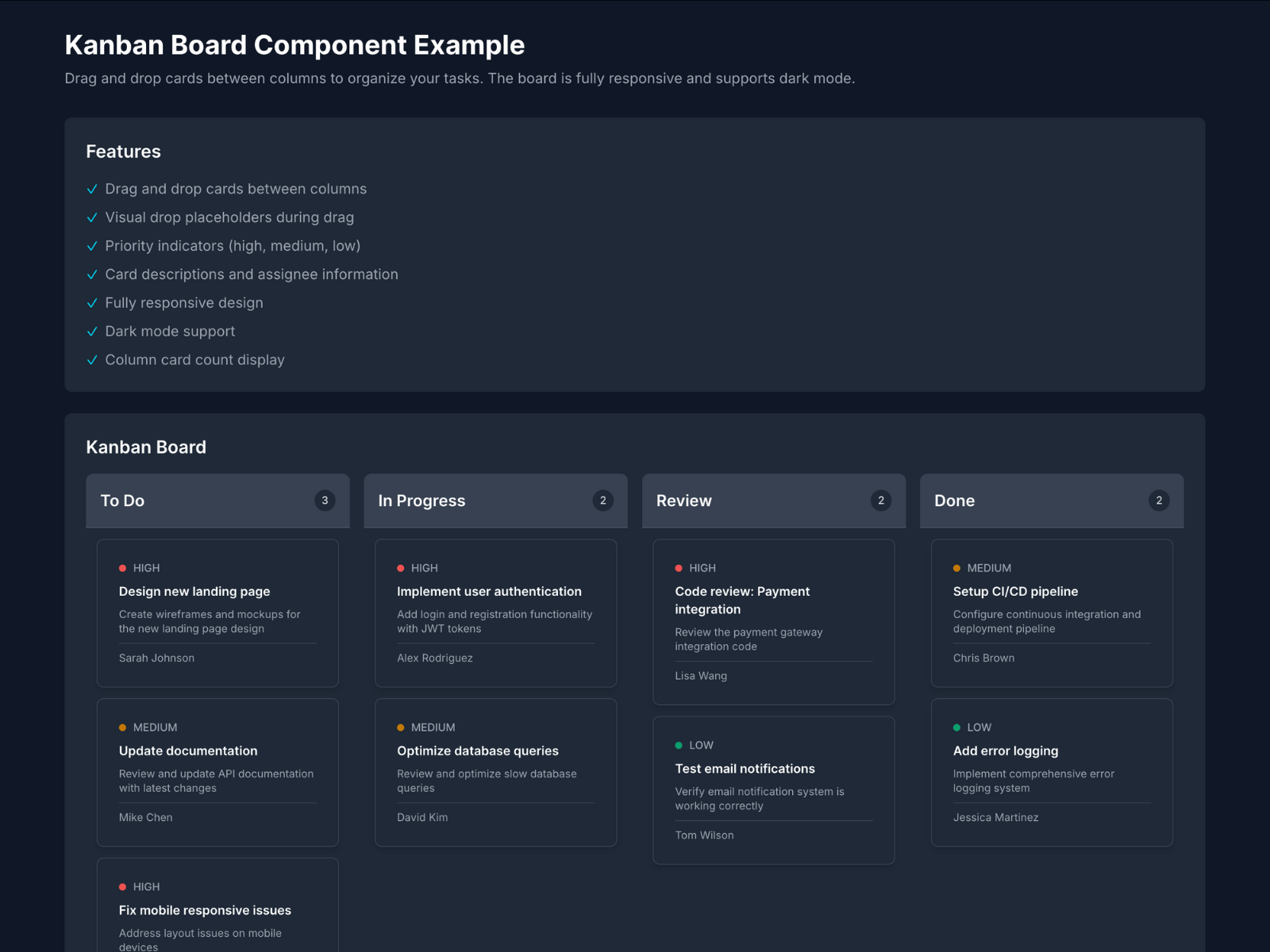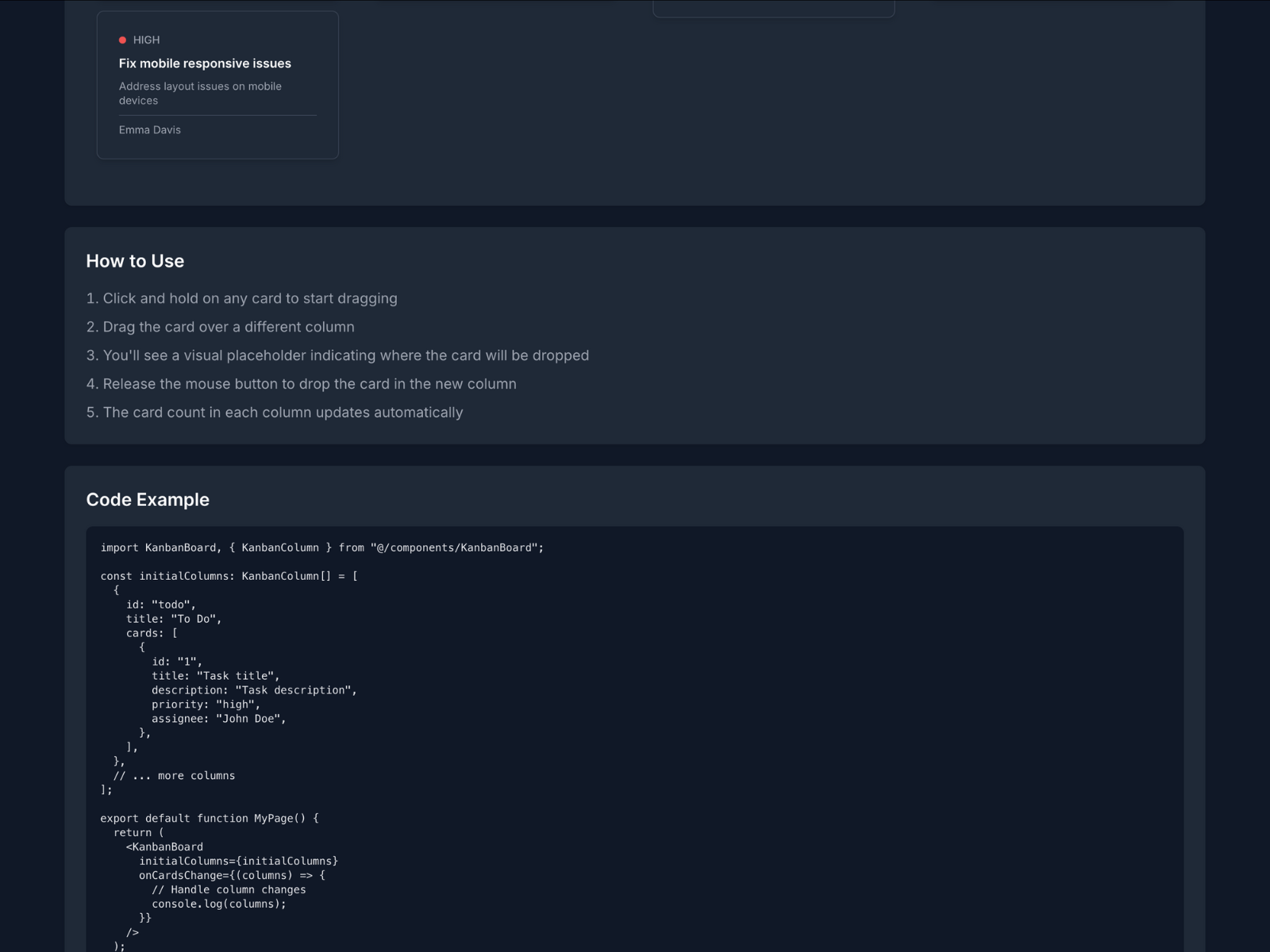 Each prompt section includes working examples that demonstrate the generated code in action: