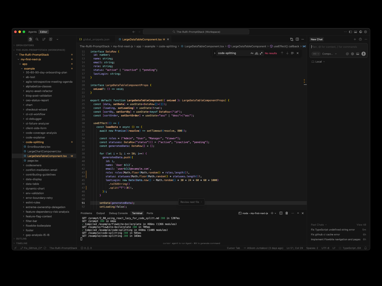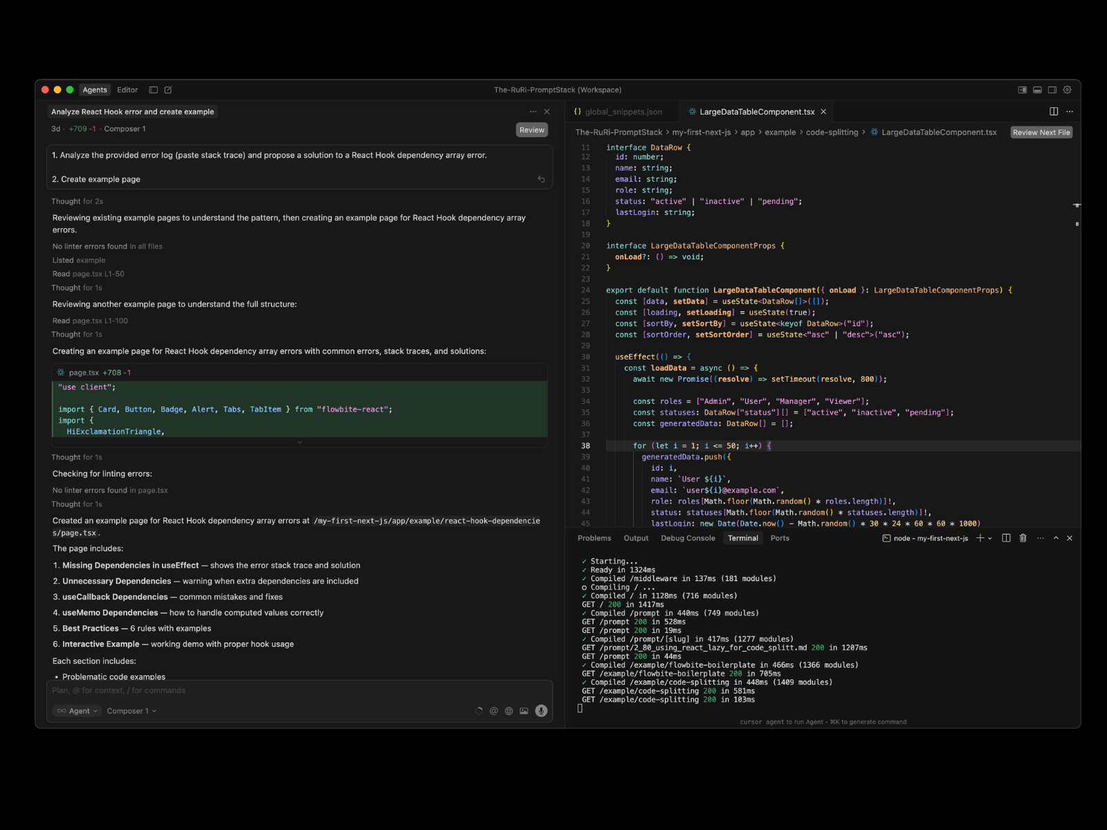 Focus: Generating boilerplate for functional components, custom hooks, and complex UI patterns.