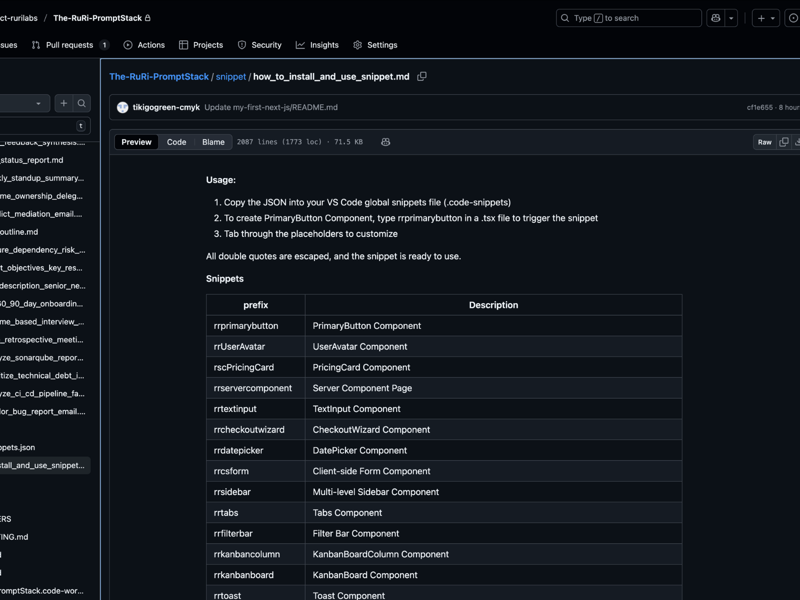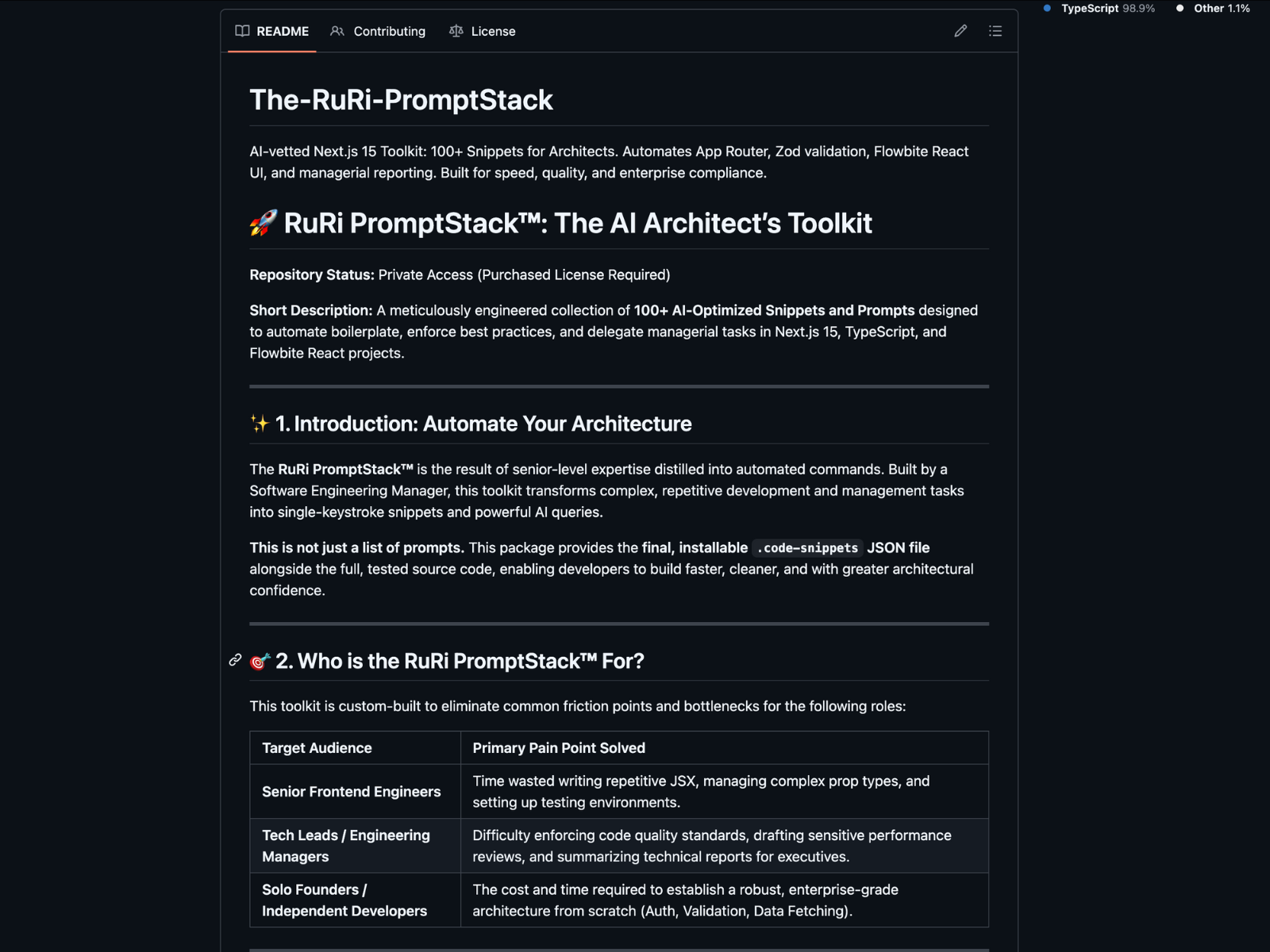 The RuRi PromptStack™ is the result of senior-level expertise distilled into automated commands. Built by a Software Engineering Manager, this toolkit transforms complex, repetitive development and management tasks into single-keystroke snippets and powerful AI queries.